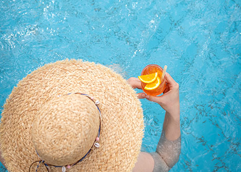 Fruchtige und spritzige Cocktails und Drinks, mit oder ohne Alkohol, direkt an den Beckenrand serviert. Das ist Sommergenuss in unserer Vulkania Cocktailbar.