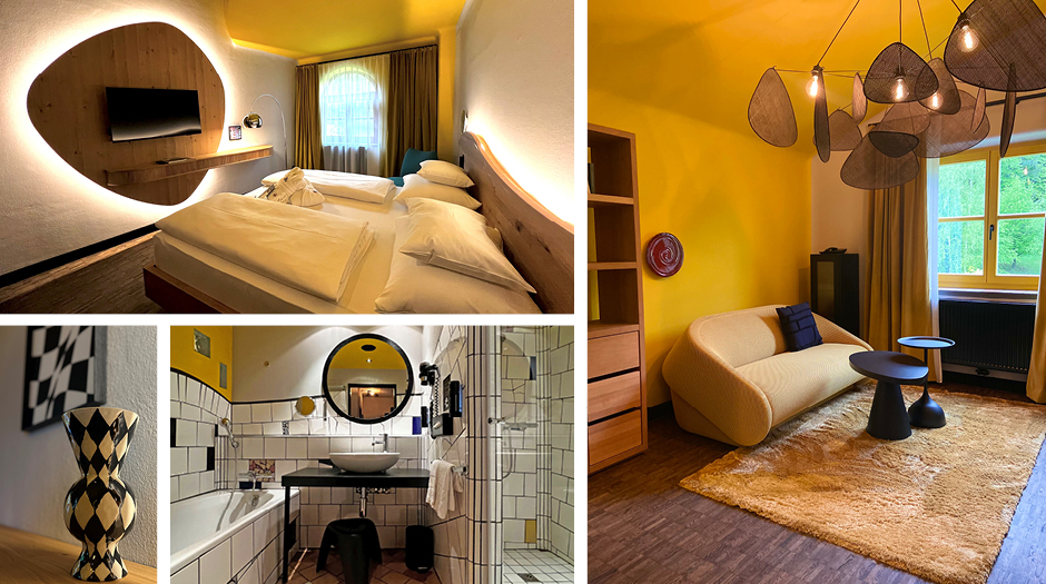 The romantic suites at Waldhofhaus are the perfect place to enjoy quality time together. They feature a spacious living room and a separate bedroom, furnished with natural solid wood furniture by Grüne Erde, two bathrooms, a double bathtub, a sun-drenched courtyard, and dedication to detail. A bottle of sparkling wine is also provided. Start your day with coffee and croissants at the private breakfast bar in the foyer. Afterwards, enjoy our breakfast buffet or our late breakfast in your bathrobe, as well as our regional evening buffet. The spa, thermal baths, and sauna area is just a 20-30 meter walk outside.