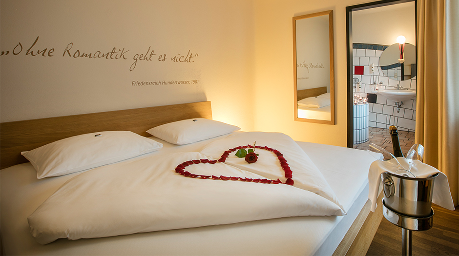 Exclusive apartments for two in the "Steinhaus" · 40-90m² · Balcony or terrace · Solid wood furniture · Designer elements · Air conditioning · Organic coffee & tea bar · Dedication to detail · ROGNER sparkling wine · Organic chocolates · Individually designed · Steinhaus brand new.