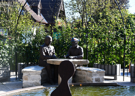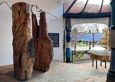 Rogner Bad Blumau, la più grande opera d'arte abitabile al mondo. La Piazza dei Visionari è stata creata in onore di Robert Rogner e dell'artista Friedensreich Hundertwasser, come segno di gratitudine da parte della comunità di Bad Blumau per la loro straordinaria visione.